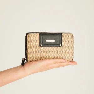 Cartera de Raffia con Asas Circulares Negras A2101