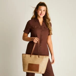 Cartera Camel con Detalle en Rafía y Asa Ancha A2078