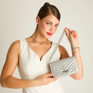 Cartera Plata con Aplicaciones y Cadena Metálica A2094