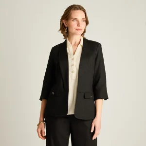 Blazer Negro Manga 3/4 Lino