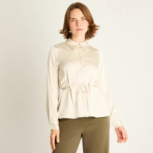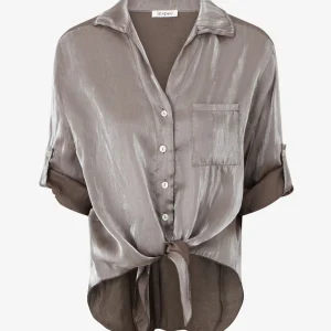 Blusa asimétrica nacarada para atar – Marrón