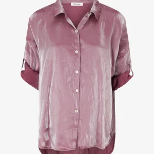 Blusa asimétrica nacarada de manga larga arremangable. – Violín