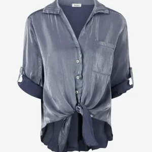 Blusa asimétrica nacarada para atar – Azul