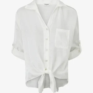 Blusa asimétrica nacarada para atar – Blanco