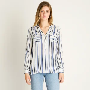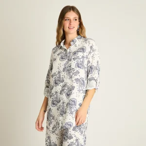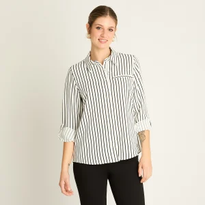 Blusa Blanco Manga 3/4 No Elasticado Sin Forro Calce Normal