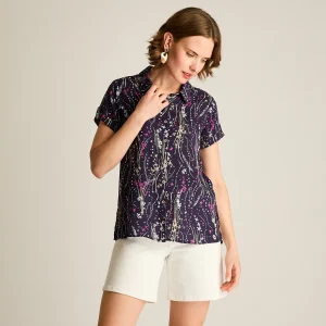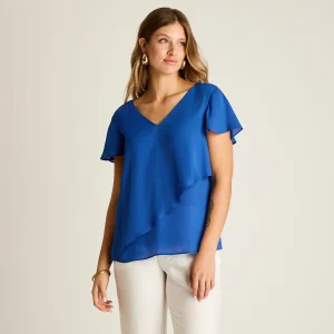 Blusa Azul Manga Corta No Elasticado Sin Forro Calce Normal A2031