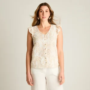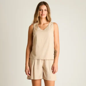 Blusa Beige Sin Mangas No Elasticado Calce Normal