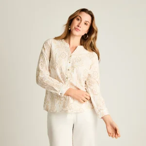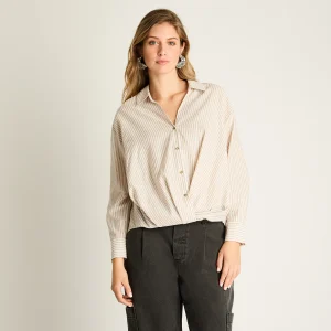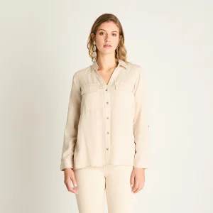 Blusa Beige Manga 3/4 No Elasticado Calce Normal