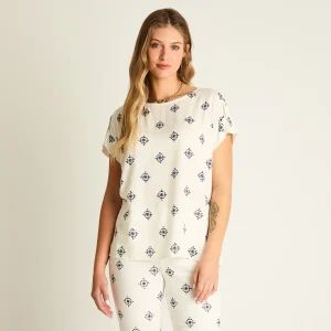 Blusa Blanco Manga Corta Elasticidad Media Sin Forro Calce Normal
