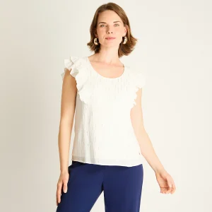 Blusa Blanco Manga Corta No Elasticado Sin Forro Calce Normal