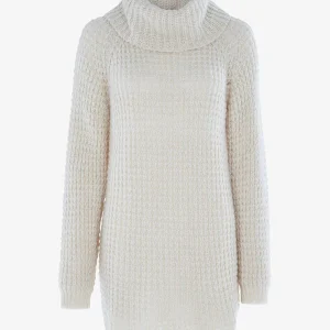 Vestido suéter de punto grueso calado – beige