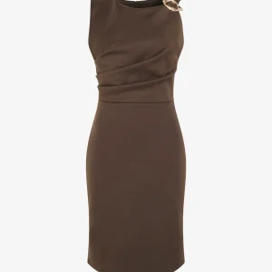 Vestido tubo con incrustación de joya – Marrón