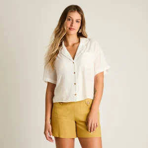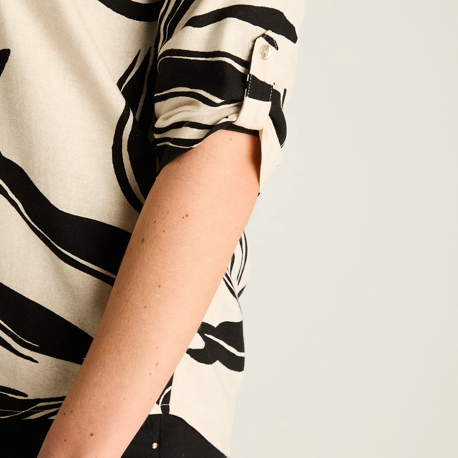 Blusa arena lino estampada manga codo | Lorenzo di Pontti