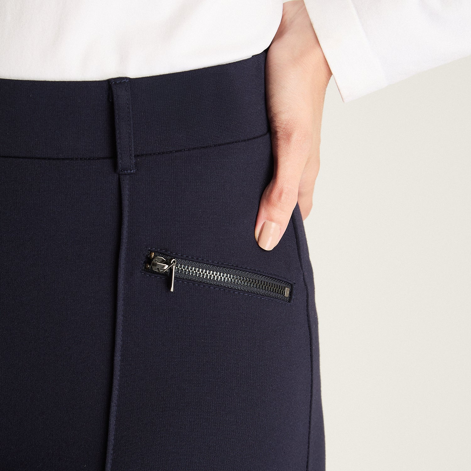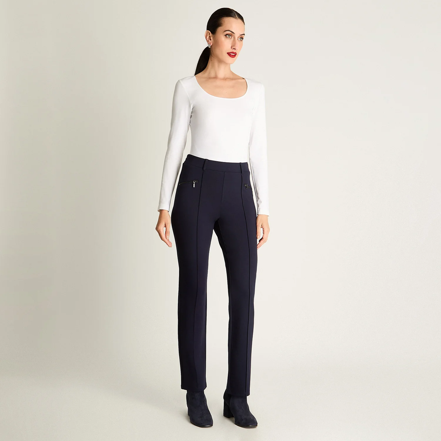 Calza recta azul con cierres Lorenzo di Pontti: cómoda, versátil y con un toque moderno