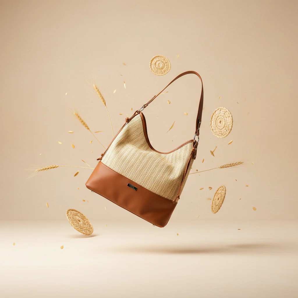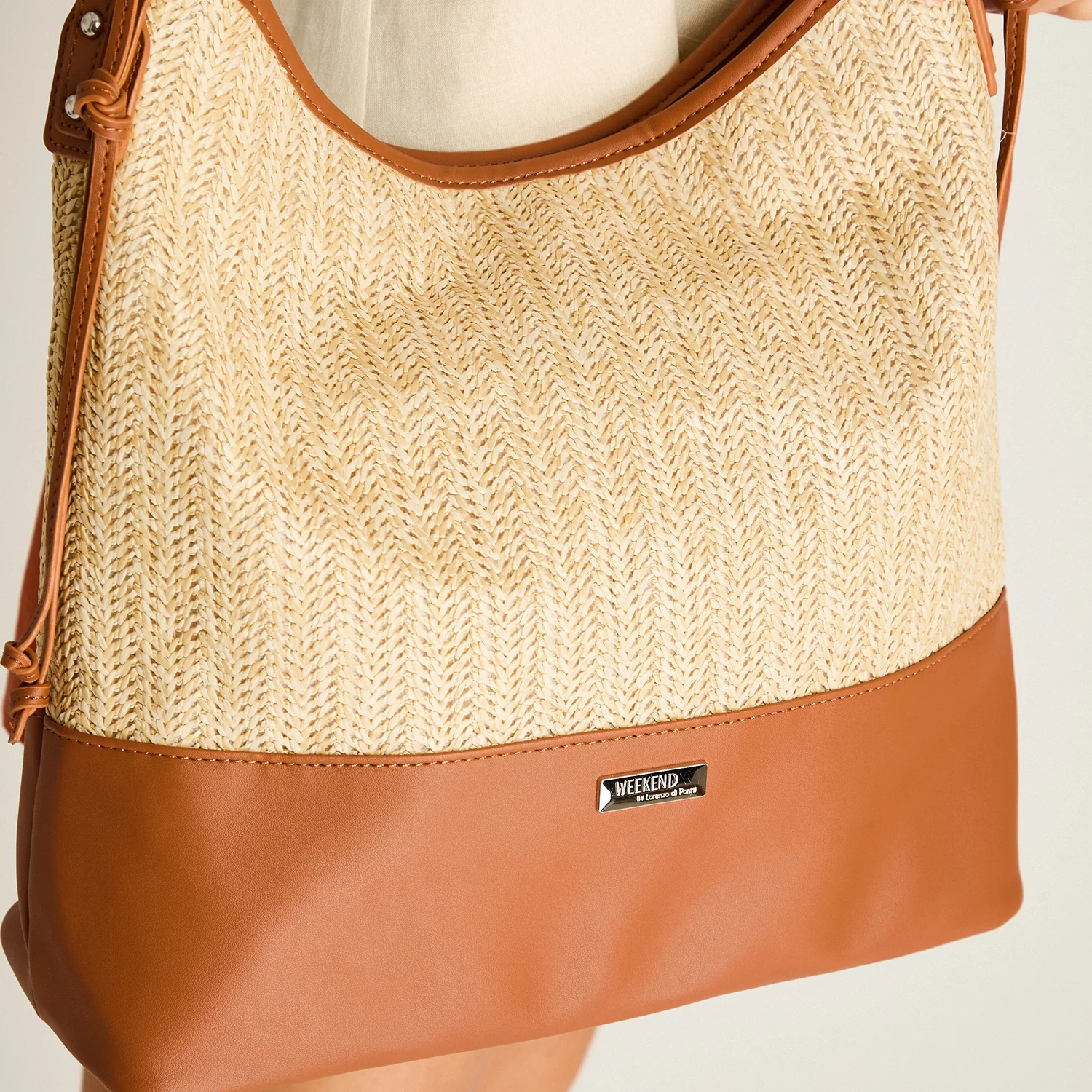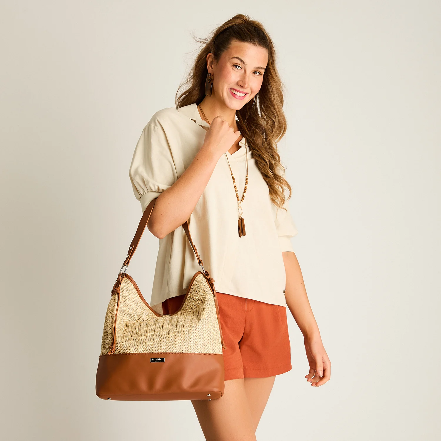 Cartera Camel con Detalle en Rafia y Asa Ancha | Weekend by Lorenzo di Pontti