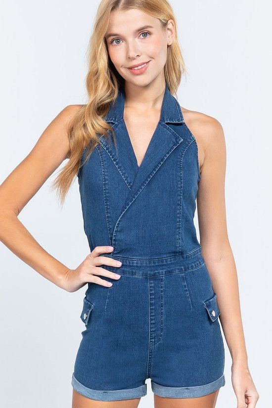 Fresco jumper de mezclilla con solapa , hecho de tela importada para un perfecto ajuste.